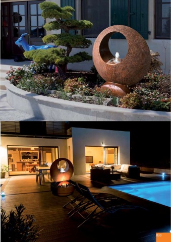 “BOUCLE” 1 - réf. 8042CO22 A,E,X B d: 115 (base d:108) x h145 cm (90 kg) 2 - réf. 8042BR A,E,X C,B,O (b90 ou b120 D: 110 x 40 x h 120 cm (fontaine seule) 1 2 B29 B30