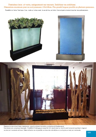Exemples de réalisations Fontaines inox et verre, uniquement sur mesure. Intérieur ou extérieur.