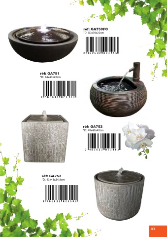 réf: GA750FO *D: 50x50x22cm réf: GA751 *D: 44x44x20cm réf: GA752 *D: 40x40x40cm réf: GA753 *D: 43x43x34.5cm 03